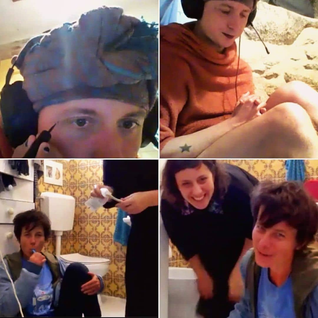 Fazendo (com) o possível neste momento tão desafiador que estamos a atravessar, no workshop que fizemos no início de Abril com alunes da École Supérieure d’Art d’Aix en Provence Félix Ciccolini, no Simpósio Viralités, convidamos a um experimento des-imunizante a partir de encontros na casa de banho para falar de assuntos emocionalmente difíceis, suportades por uma pessoa estranha a também partilhar, ao mesmo tempo, o acesso aos seus rituais privados cotidianos de cuidados e manutenção corporal.